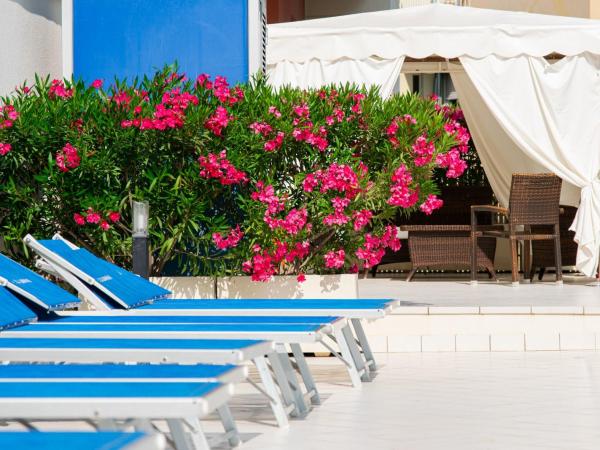La piscina dell'Hotel Losanna a Gabicce Mare è uno spazio dove il tempo rallenta. La luce che si riflette sull'acqua, il silenzio interrotto solo da piccoli movimenti, l'aria aperta tutt'intorno: tutto invita a rilassarsi, respirare con calma e lasciarsi avvolgere da una sensazione di benessere naturale.